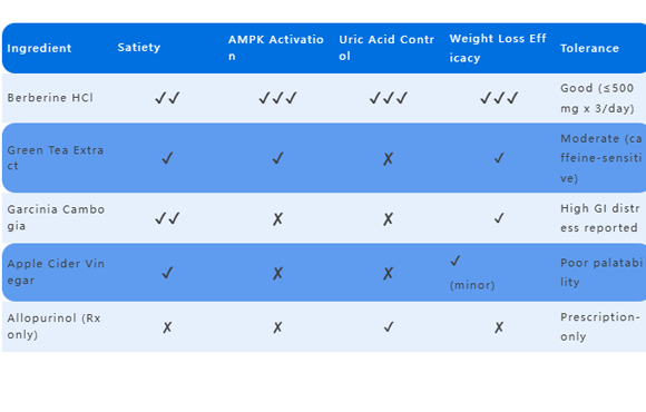 • Standalone Capsules/Tablets: Weight support, glucose balance, uric acid control