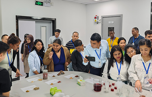 9月11日,由中华人民共和国商务部主办、中国食品发酵工业研究院承办的“发展中国家功能食品开发与应用技术培训班”在浙江省宁波市迎来了新的一站。来自古巴、格林纳达、马来西亚、毛里求斯、尼泊尔、泰国等国家的30余名政府官员和技术专家共同走进泰一健康,深入交流中医药文化的发展及功能性食品的开发与应用。
