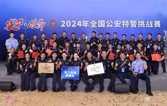 8月13日至17日,“尖刀·使命”2024年全国公安特警挑战赛在浙江公安特警训练基地顺利举办。全国35支代表队420名队员参赛,800余人观摩赛事。这是公安部近十年来举办的规模最大、科目最多、周期最长的一次赛事,也是浙江公安首次承办全国综合性特警比武,流程环节复杂、安全要求高,赛事组织、备战参赛工作责任重大、任务艰巨。