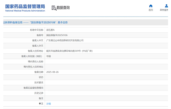 根据国家药监局2025年8月27日公示信息,泰一化妆品新原料尿石素A(备案号:国妆原备字20250106)已正式通过备案审核,该产品是公司首个获批的专利化妆品新原料,标志着泰一在前沿细胞抗衰化妆品原料创新领域取得重要突破。
