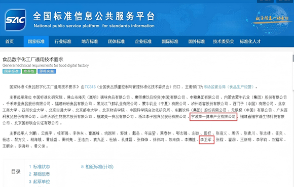 泰一健康与行业内多家企业共同参与起草的“食品数字化工厂通用技术要求”的国家标准,该标准的制定将推动食品行业数字化工厂通用技术规范的发展,将为国内食品企业智能化、数字化转型提供清晰的实践指引,推动行业整体高质量发展。